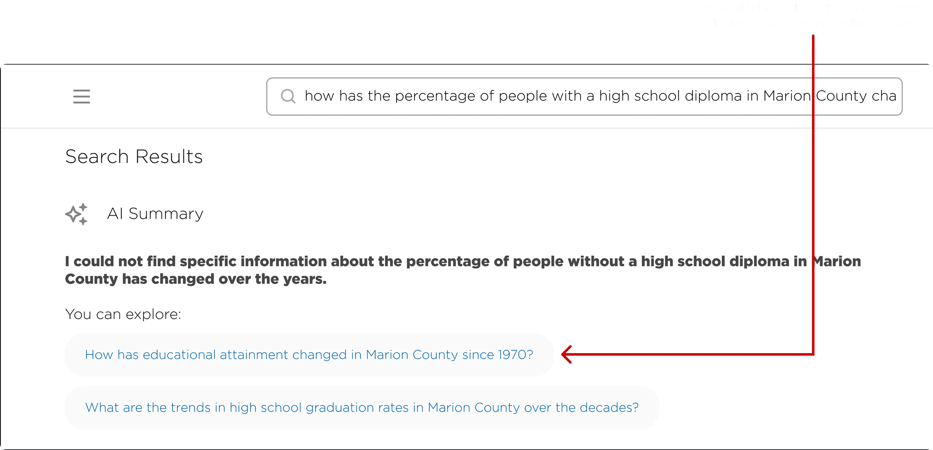 Participants asked, "Overall, Marion County data."Too broad, AI hallucinated irrelevant results.